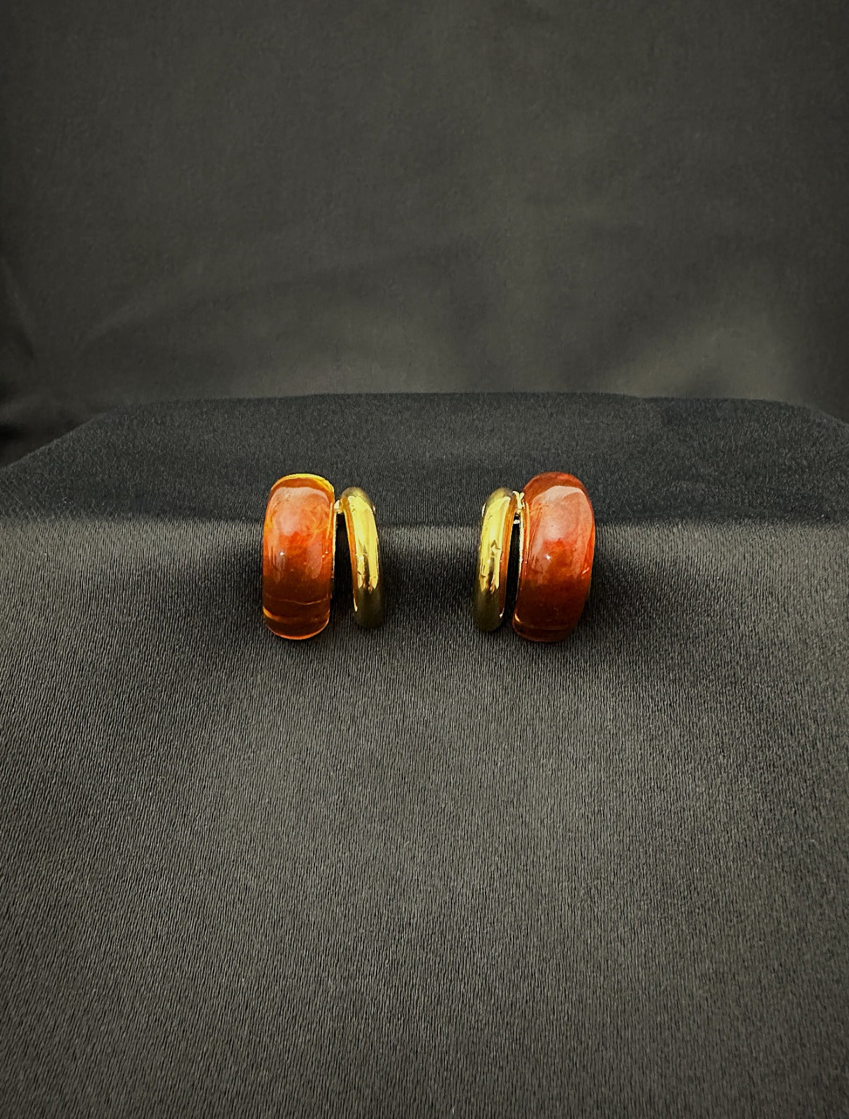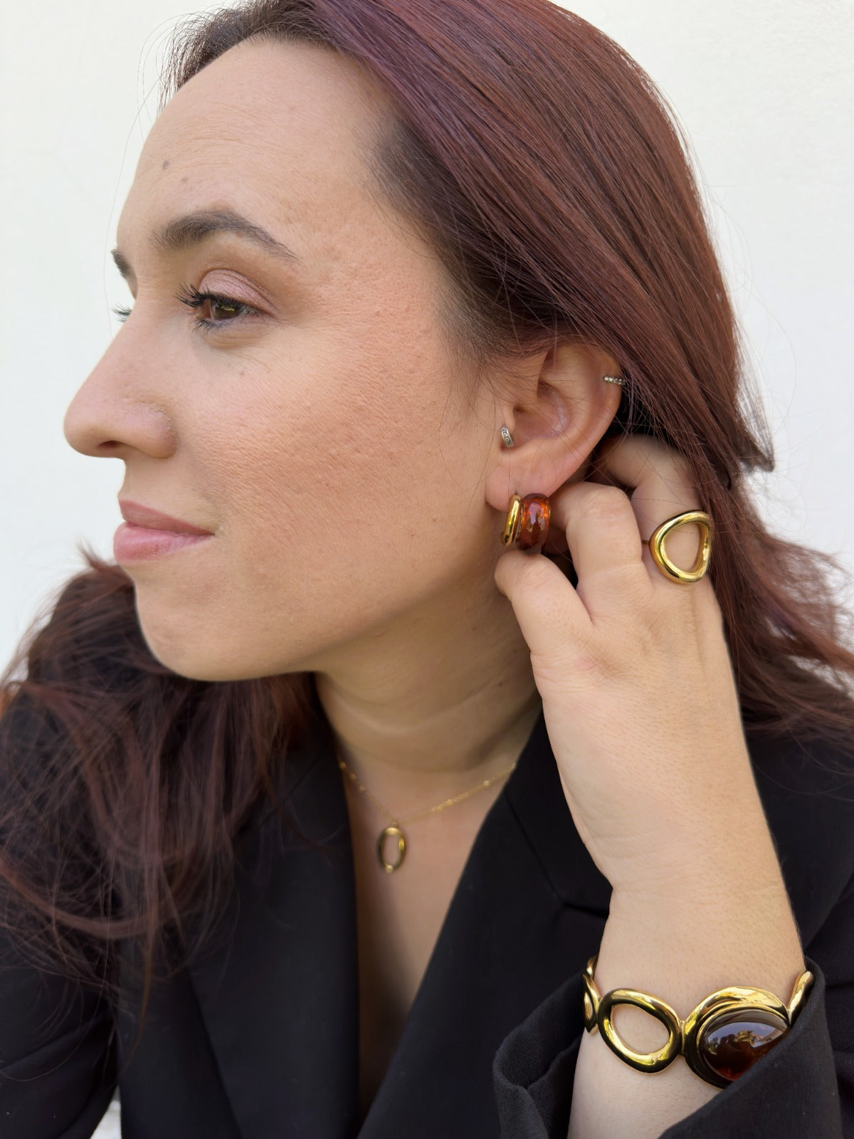 Os brincos MARSELHA. refletem o calor do entardecer — âmbar e ouro em equilíbrio perfeito.