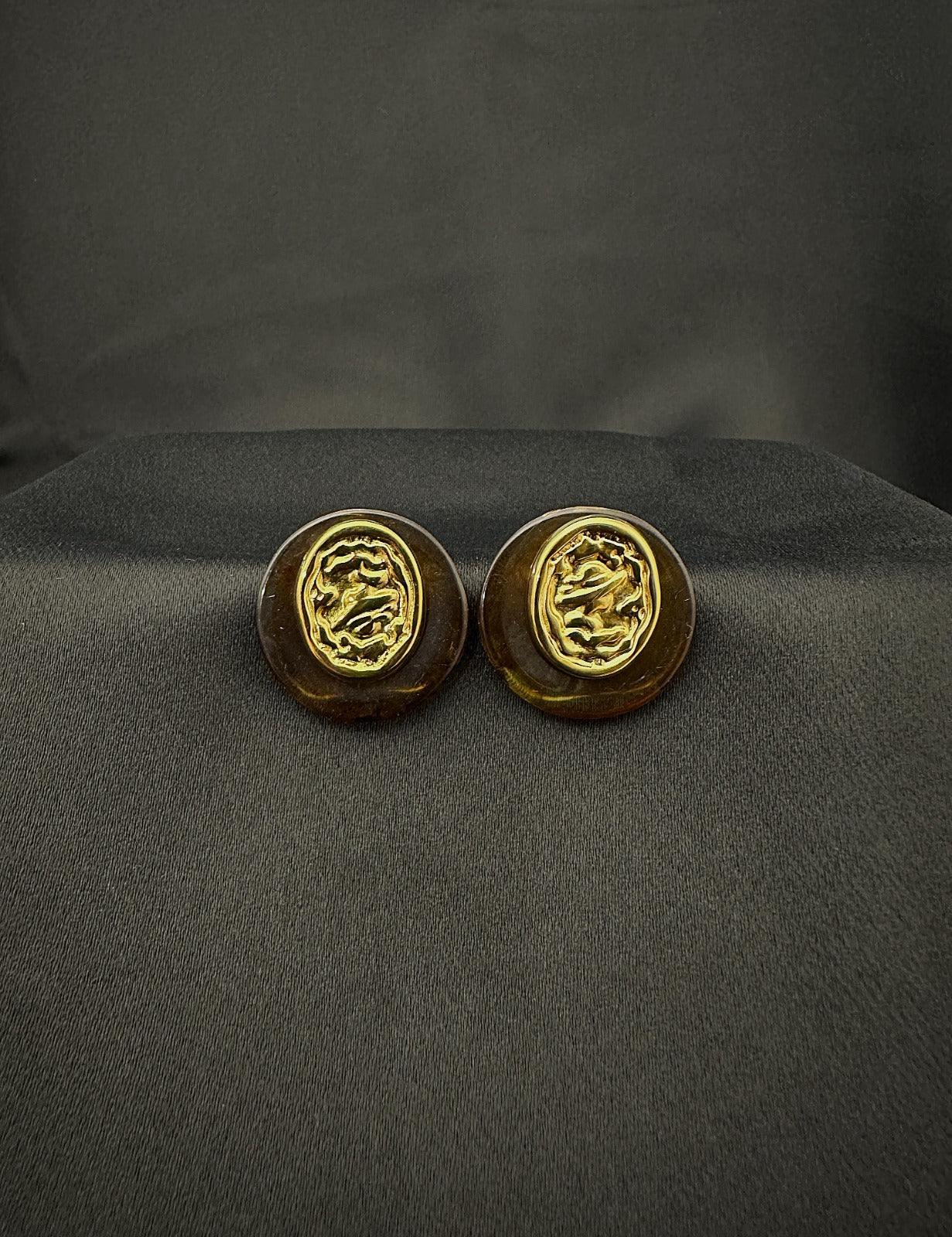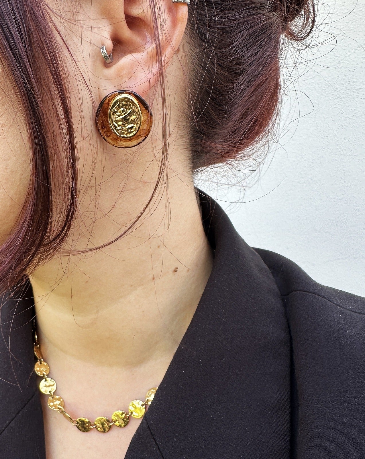 Os brincos NAIROBI. unem o dourado polido ao tom âmbar translúcido num contraste hipnotizante.