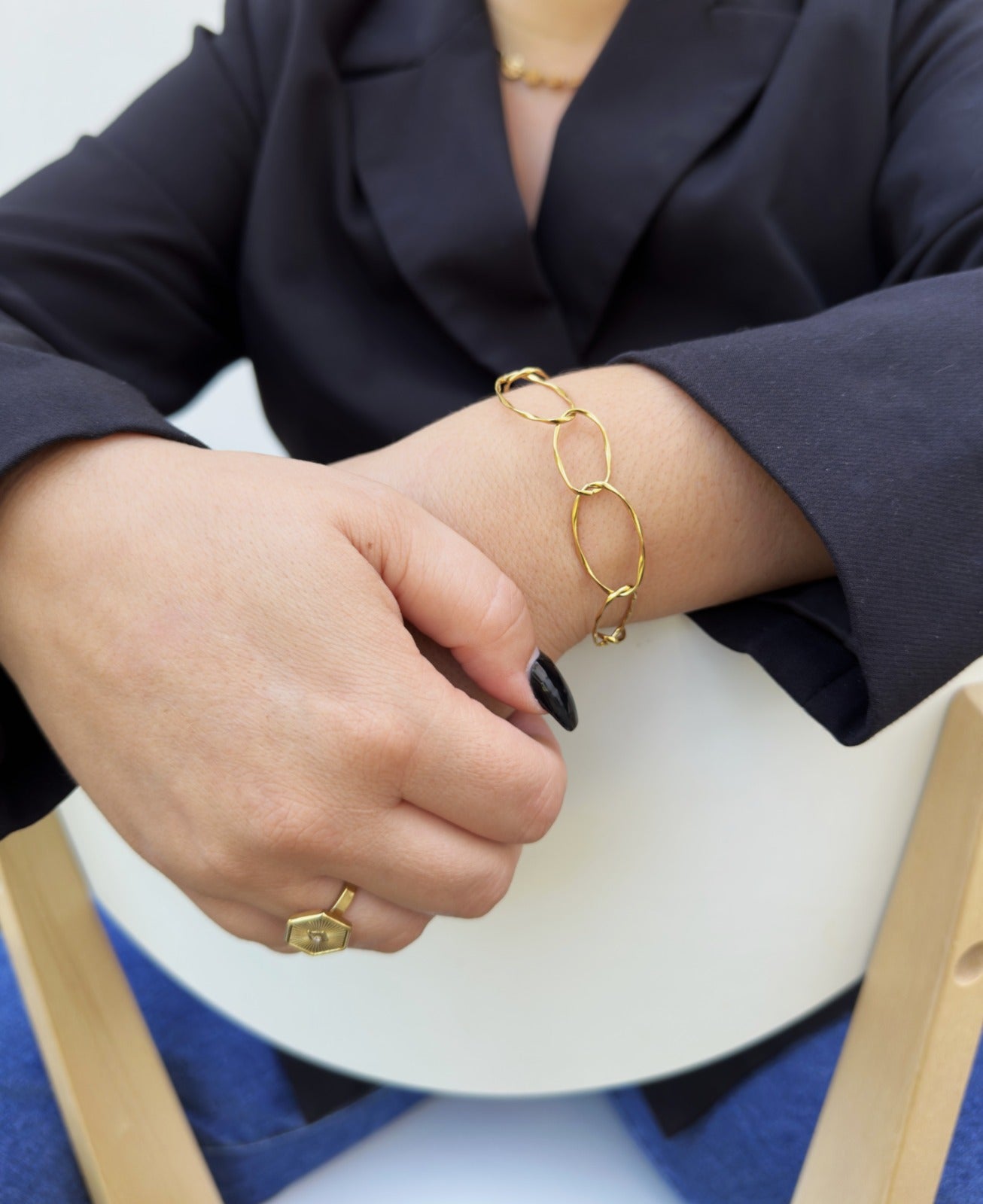 A pulseira OSAKA. é uma celebração do design contemporâneo — elos orgânicos que se entrelaçam com naturalidade, criando um brilho subtil e elegante.
