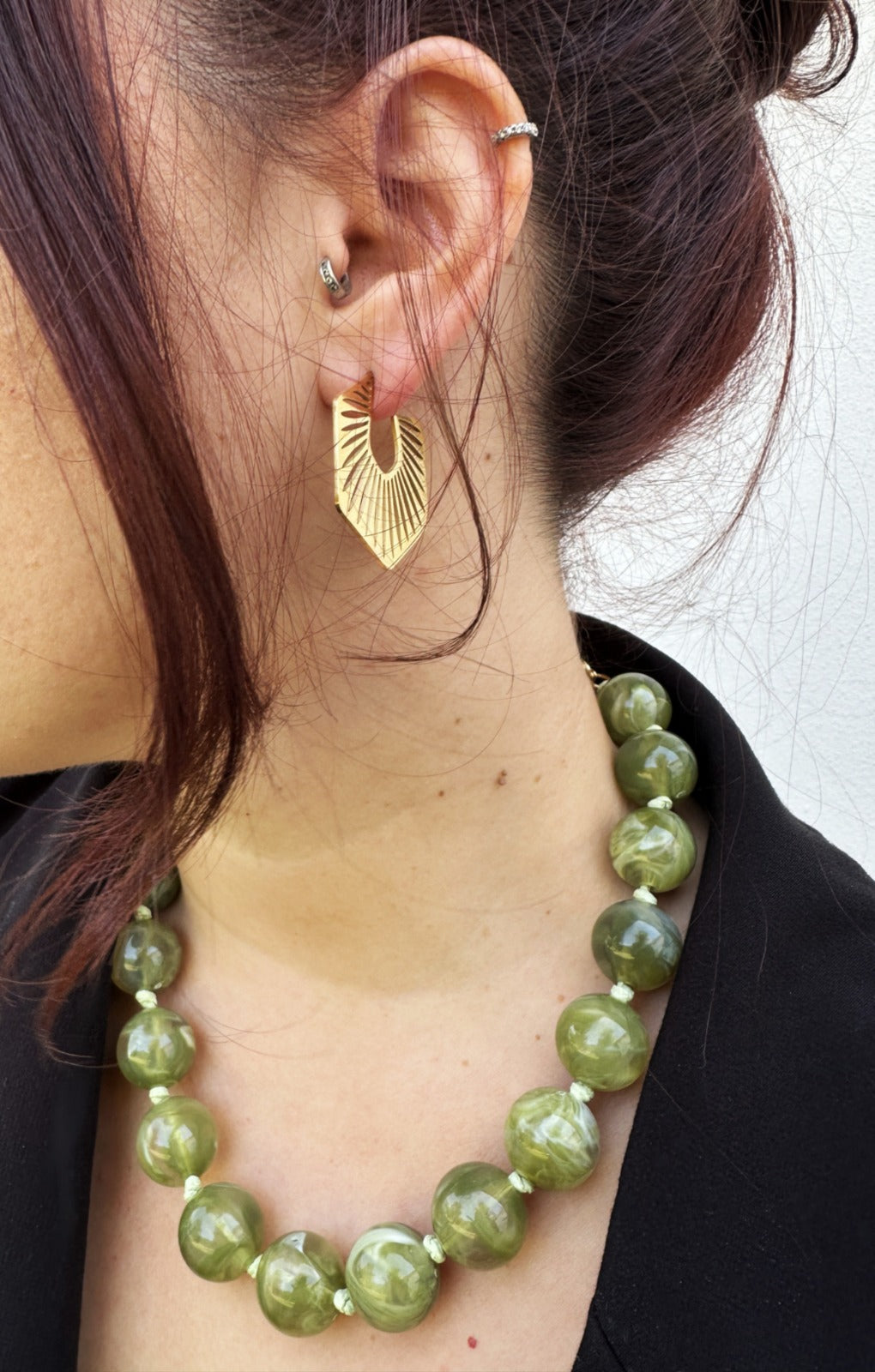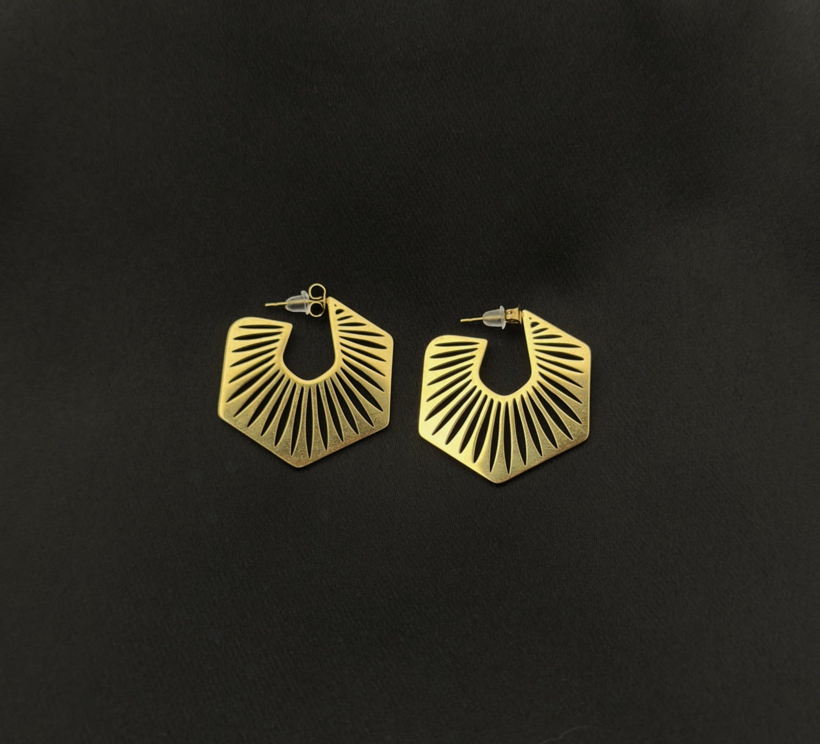 Os brincos PHOENIX. captam a luz em cada movimento — um design geométrico e solar que simboliza poder e transformação.