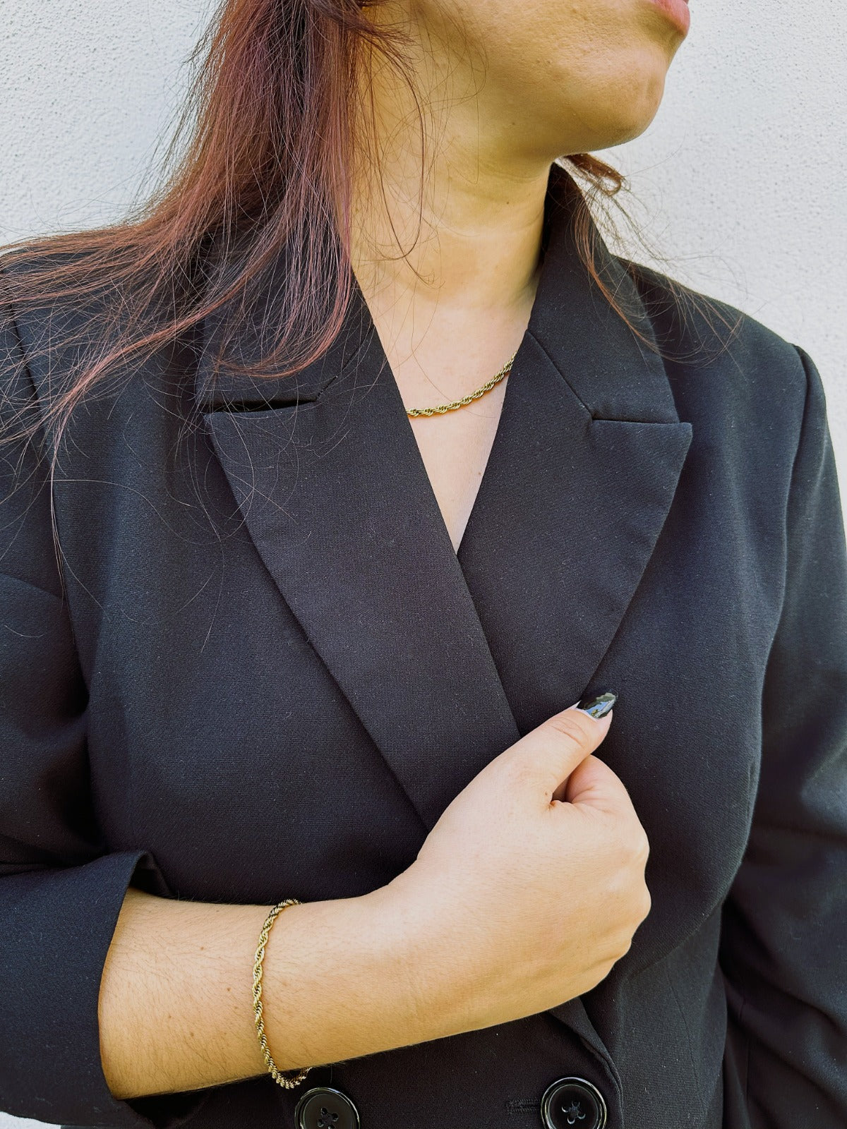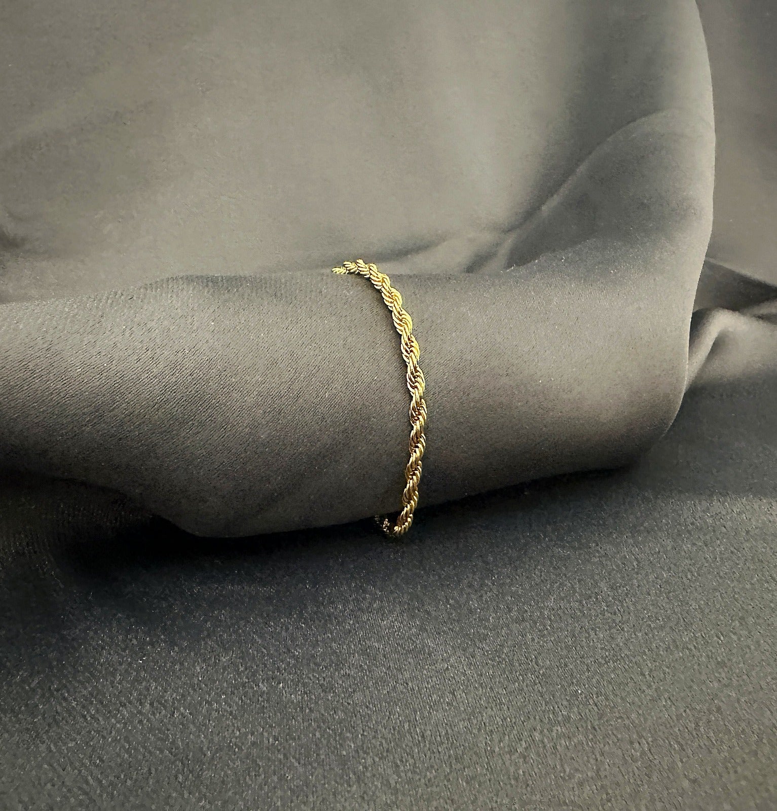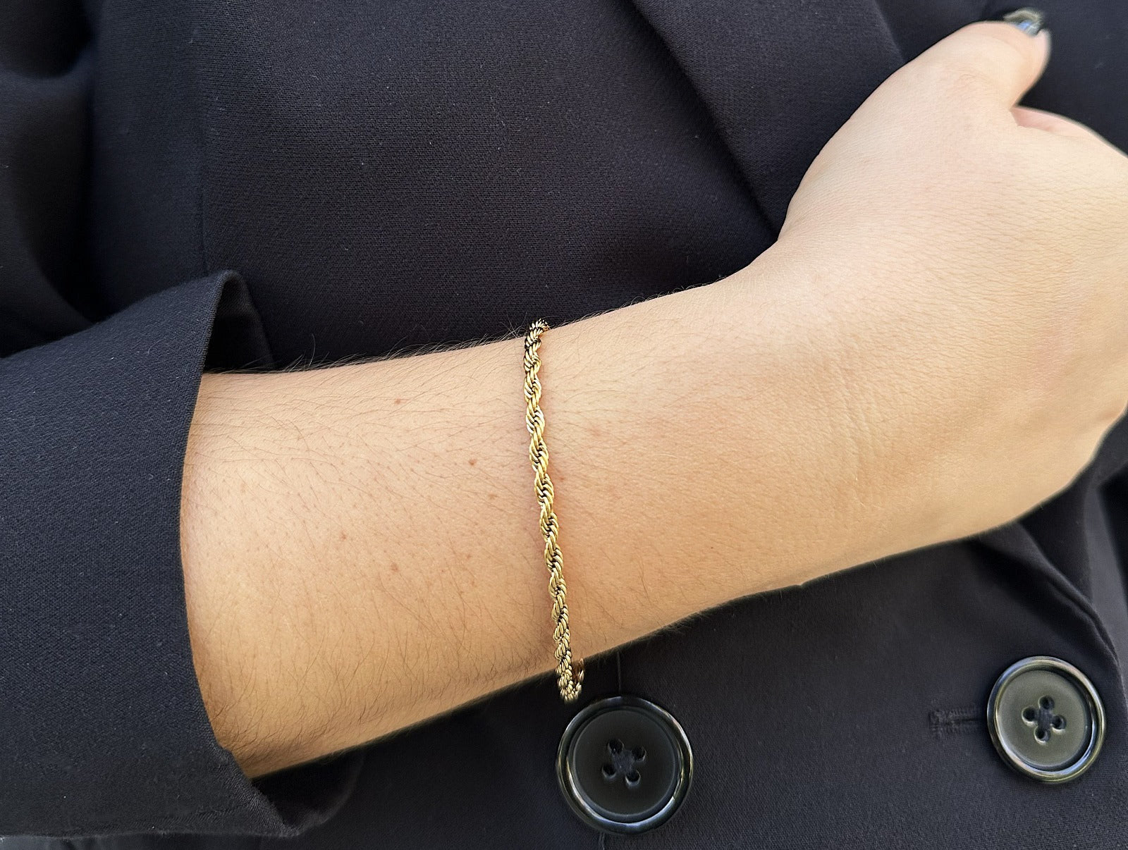 A pulseira PRAGA. celebra o charme dos gestos subtis — um fio entrelaçado que reflete luz e confiança.