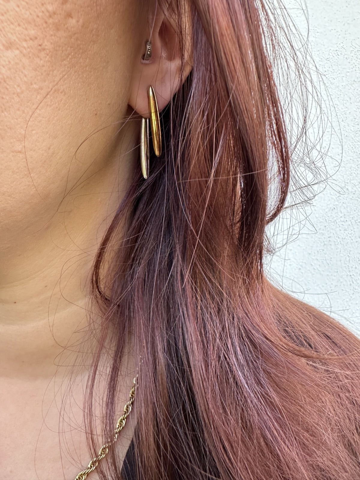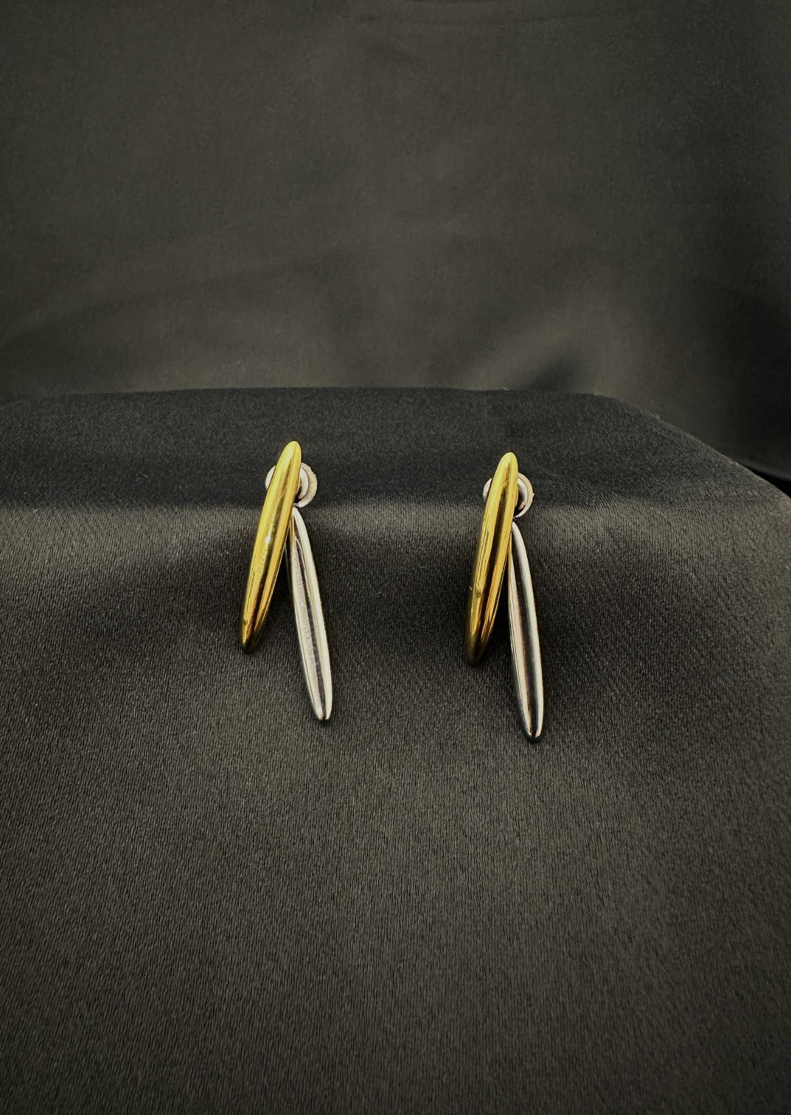 Os brincos STOCKHOLM. combinam o dourado e o prateado num contraste subtil que redefine o minimalismo contemporâneo.