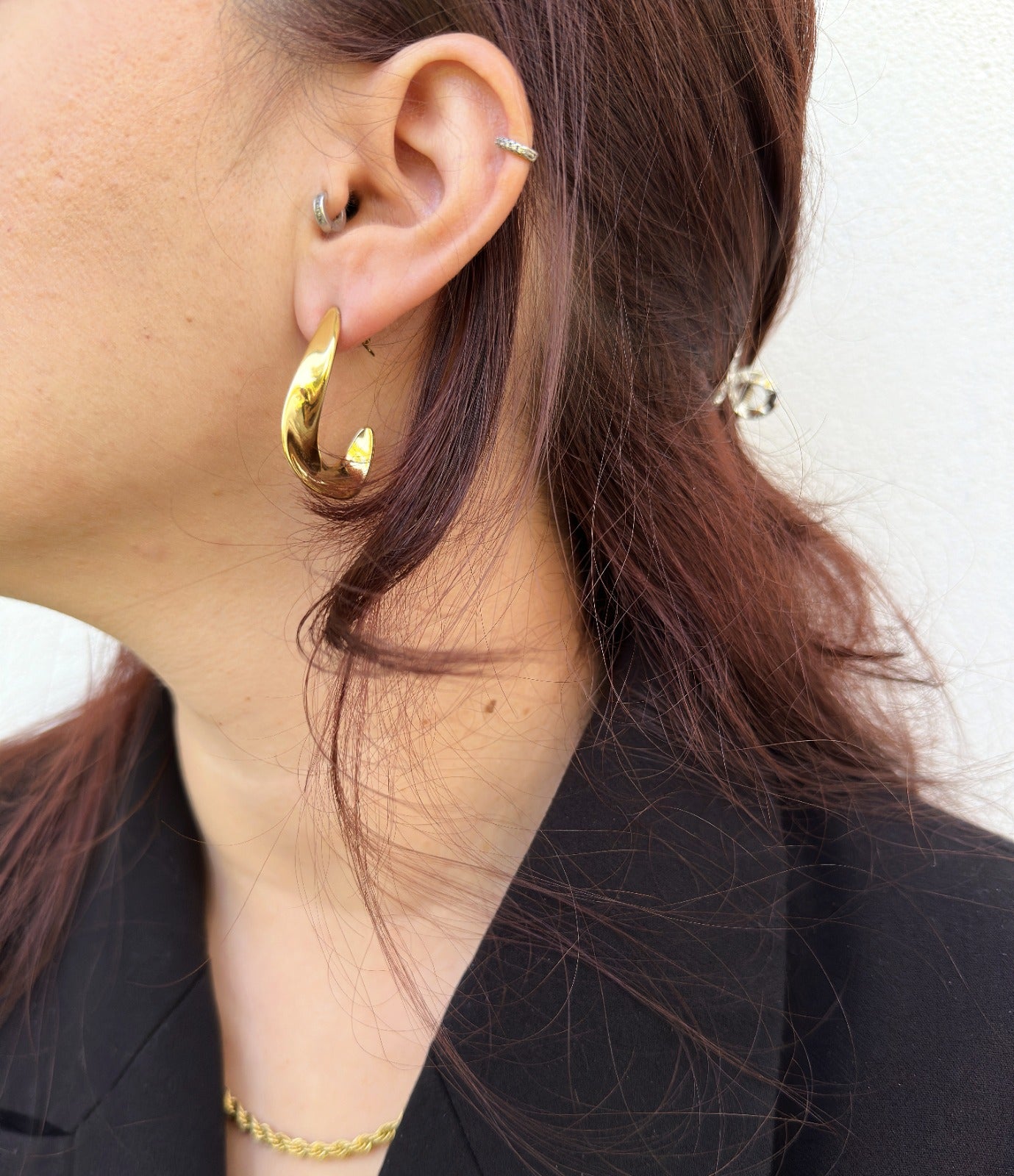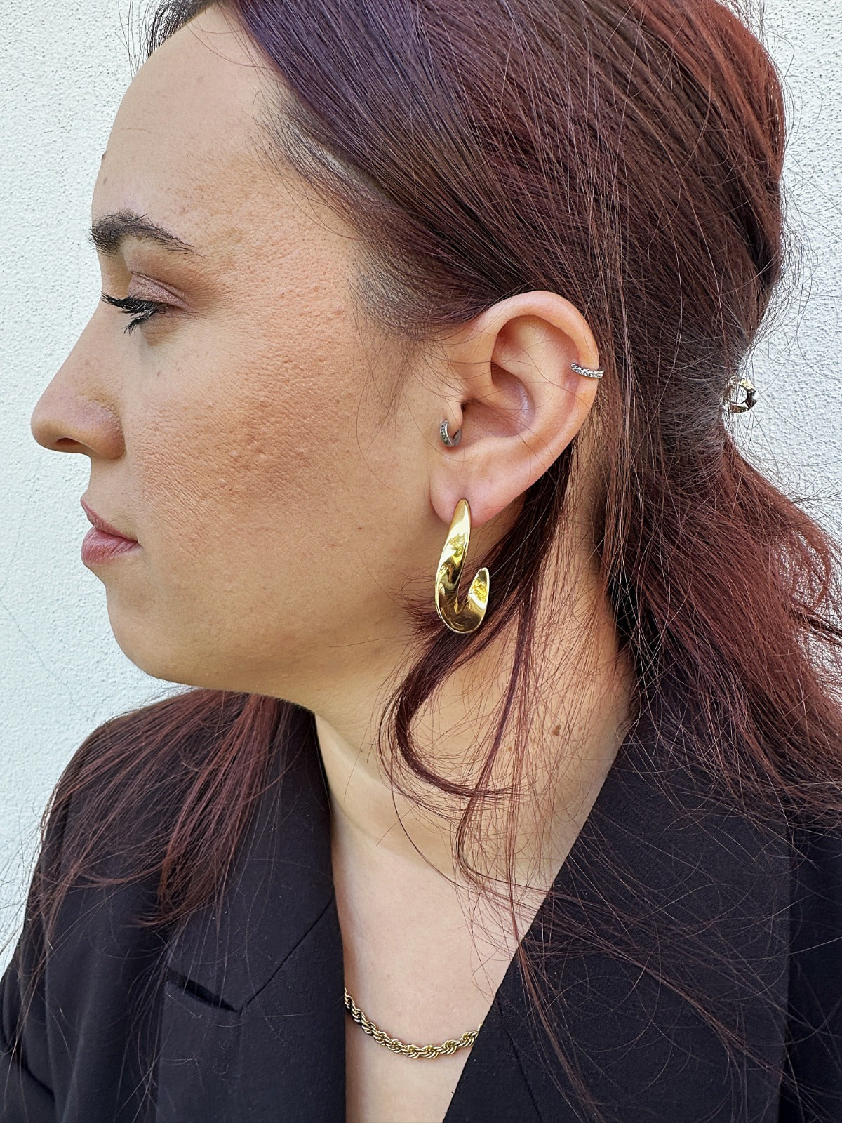 Os brincos SYDNEY. são um manifesto de design — curvas fluidas que refletem o brilho e a confiança de quem sabe que o estilo é atitude.